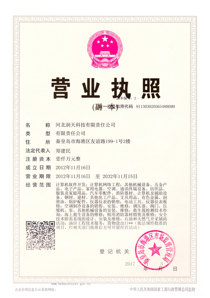 河北潤天科技有限責(zé)任公司始于2000年成立,公司以工業(yè)、應(yīng)急救援產(chǎn)品貿(mào)易為基礎(chǔ),主營安全設(shè)備、安全裝備、儀器儀表的銷售、維修及檢驗檢測;公司通過了CMA、CNAS實(shí)驗室認(rèn)證及特種設(shè)備檢驗檢測機(jī)構(gòu)核準(zhǔn)以...[更多]